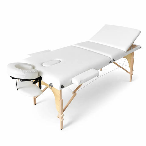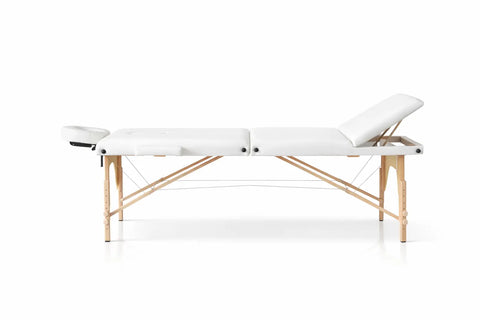 מיטת טיפולים מתקפלת ומתכווננת מעץ - לבן