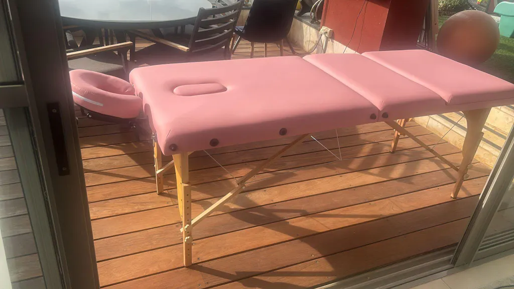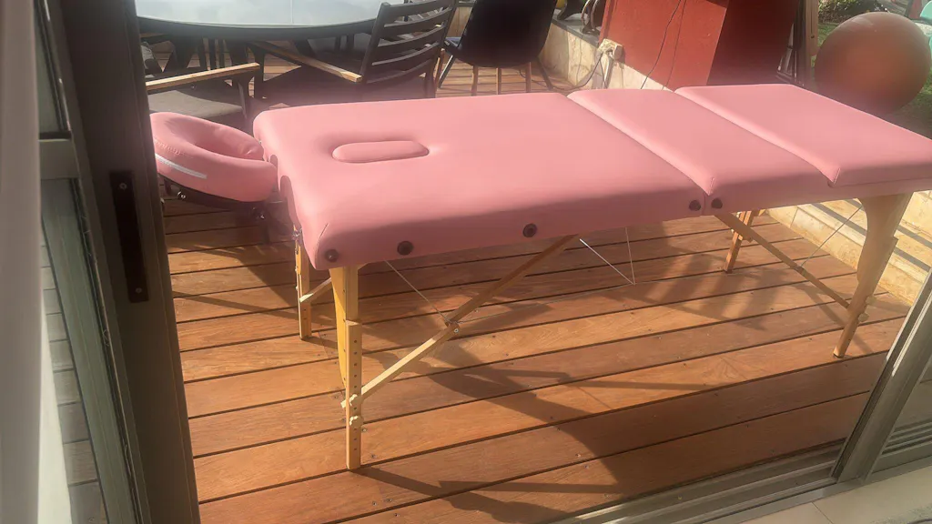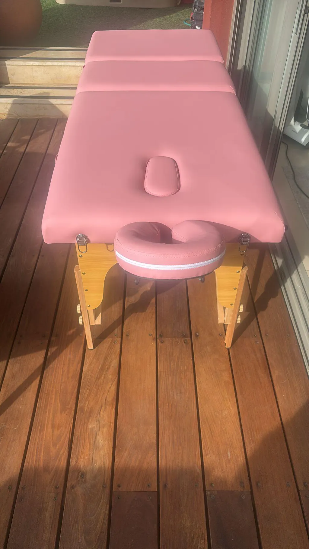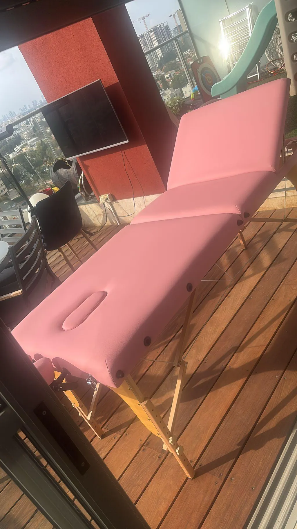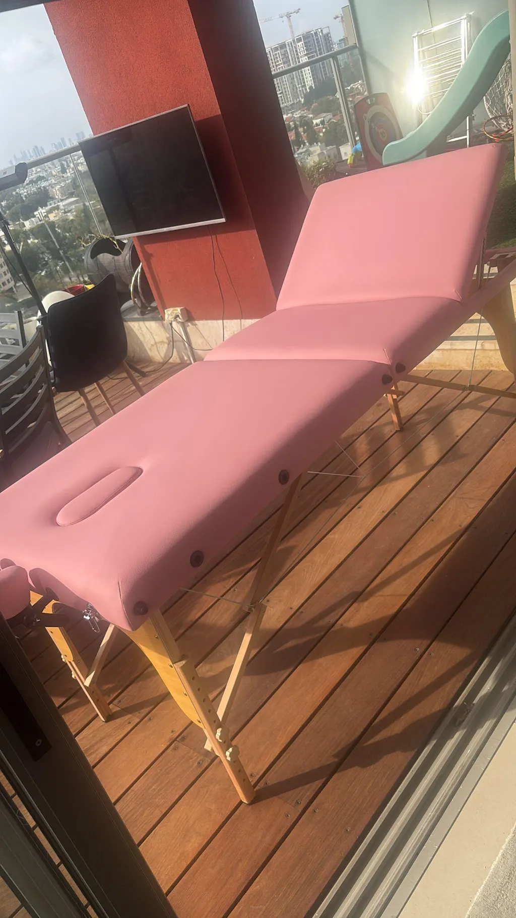 מיטת טיפולים מתקפלת ומתכווננת מעץ - ורוד