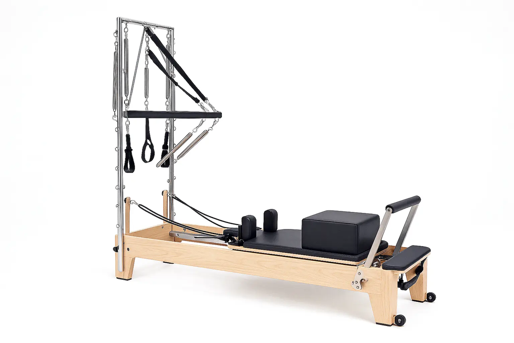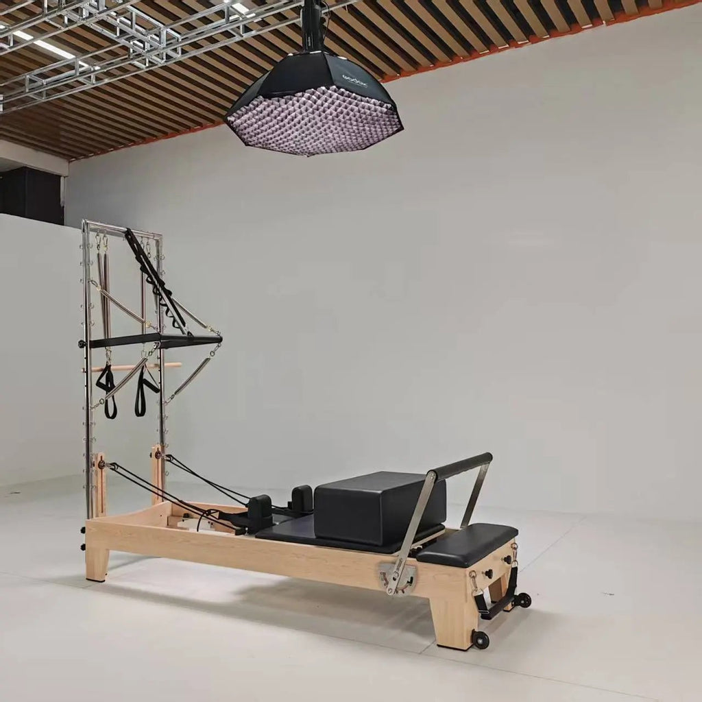 מיטת פילאטיס טאוור רפורמר מקצועית מעץ מייפל – פתרון 4 ב-1 לסטודיו או לבית