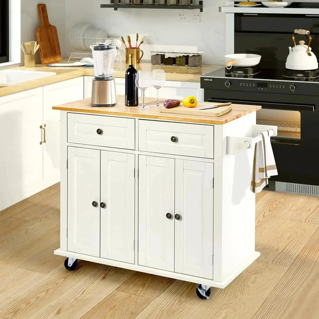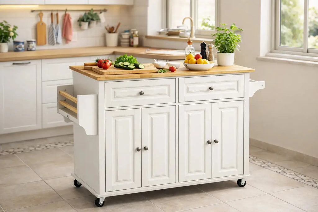 משטח עץ אלון מלא עליון כפול לסידור מגוון אביזרי קפה ומטבח